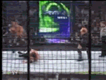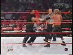 Cena vai entrando no Ring, Edge fica no chão, Cena tenta o levantar mais....