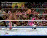 Carlito sobe no Corner, espera Chavo levantar e DropKick, mais Chavo consegue segurar ele, ele abaixa do corner fica parado Chavo corre e Dropkick