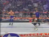 Kane vai pra corda volta e ... RVD Levanta corre junto mais Kane da um Back Body Drop